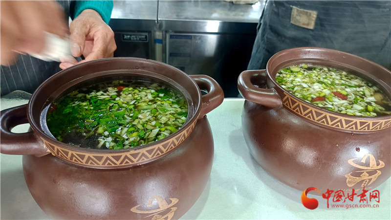 “選材不能將就,三年以上的羯羊,肉質(zhì)才夠緊實(shí);配菜必用山丹野生地耳、發(fā)菜,這是罐罐席的魂。”凌晨五點(diǎn),王永德已穿梭在農(nóng)貿(mào)市場,指尖劃過羊肉紋理,便能辨出新鮮與否。“緊火煮肉,慢火煨湯,火候差一分,味道就薄一寸。”王永德從吊湯、炒糖色到下料煨香,八道工序環(huán)環(huán)相扣,八小時(shí)文火慢熬,方得一罐琥珀色的濃湯。