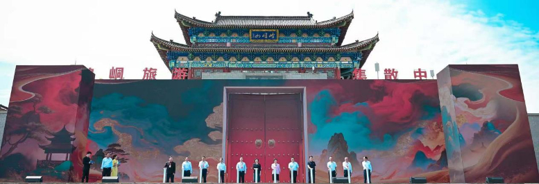 最受矚目的啟動儀式上,與會領(lǐng)導(dǎo)嘉賓共同觸發(fā)啟動裝置,現(xiàn)場大屏如“城門”般緩緩開啟,崆峒古鎮(zhèn)城門同步打開,各門派旗幟于城門之上迎風(fēng)飄揚。啟動嘉賓與各門派代表共同步入城門,象征著崆峒武術(shù)打破邊界、融會貫通的武學(xué)精神,更開啟了各方交流共進的新篇章。