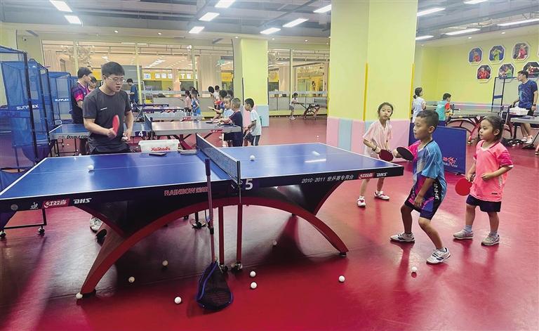 國芳G99一家乒乓球培訓機構(gòu)內(nèi)每張球桌前都有教練指導學員練習。“暑期班從7月10日持續(xù)至8月24日,針對零基礎(chǔ)學員推出一對一火箭課培訓。目前,教練時段全滿員,報班需要提前預約。”該機構(gòu)負責人介紹,機構(gòu)共推出苗子班、啟蒙營、基礎(chǔ)營等5種班型,按年齡和水平劃分,價位為1480元至2980元。4至6歲孩子可參加一對多的苗子班和啟蒙營,大一些的孩子則可參加基礎(chǔ)營、提高營進行對打訓練。