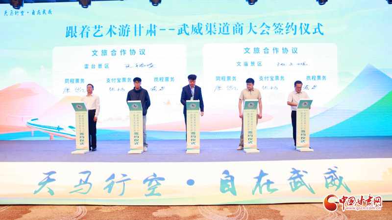 隨后舉行集中簽約儀式。武威市文體廣電和旅游局分別與中國(guó)旅行社協(xié)會(huì)鐵道旅游分會(huì)、甘肅蘭鐵國(guó)際旅行社有限公司簽署合作協(xié)議。