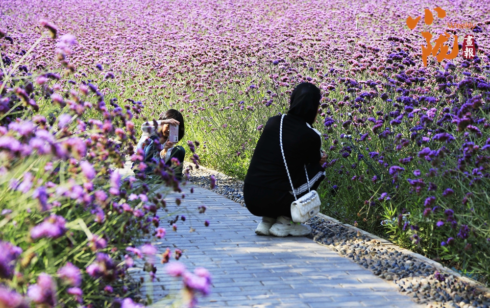浪漫的花堤與黃河自然相擁,像大地鋪開的彩色錦緞。最先撞進眼球的,是萬壽菊的熱烈,一簇簇、一片片,風過時便齊齊搖晃,再往前走,成片成片的馬鞭草漫過視野,恍惚間才驚覺這是獨屬于永靖的混搭浪漫。