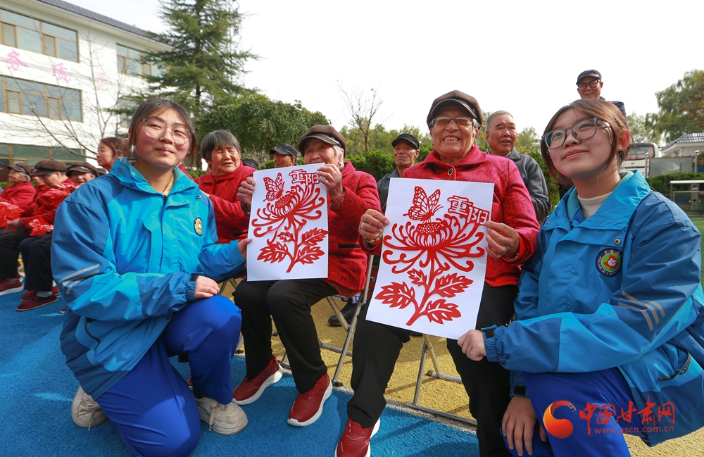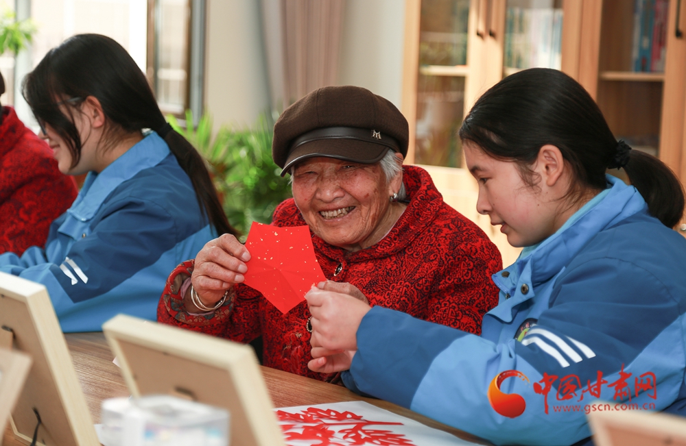 學(xué)生志愿者為老人們贈(zèng)送剪紙作品