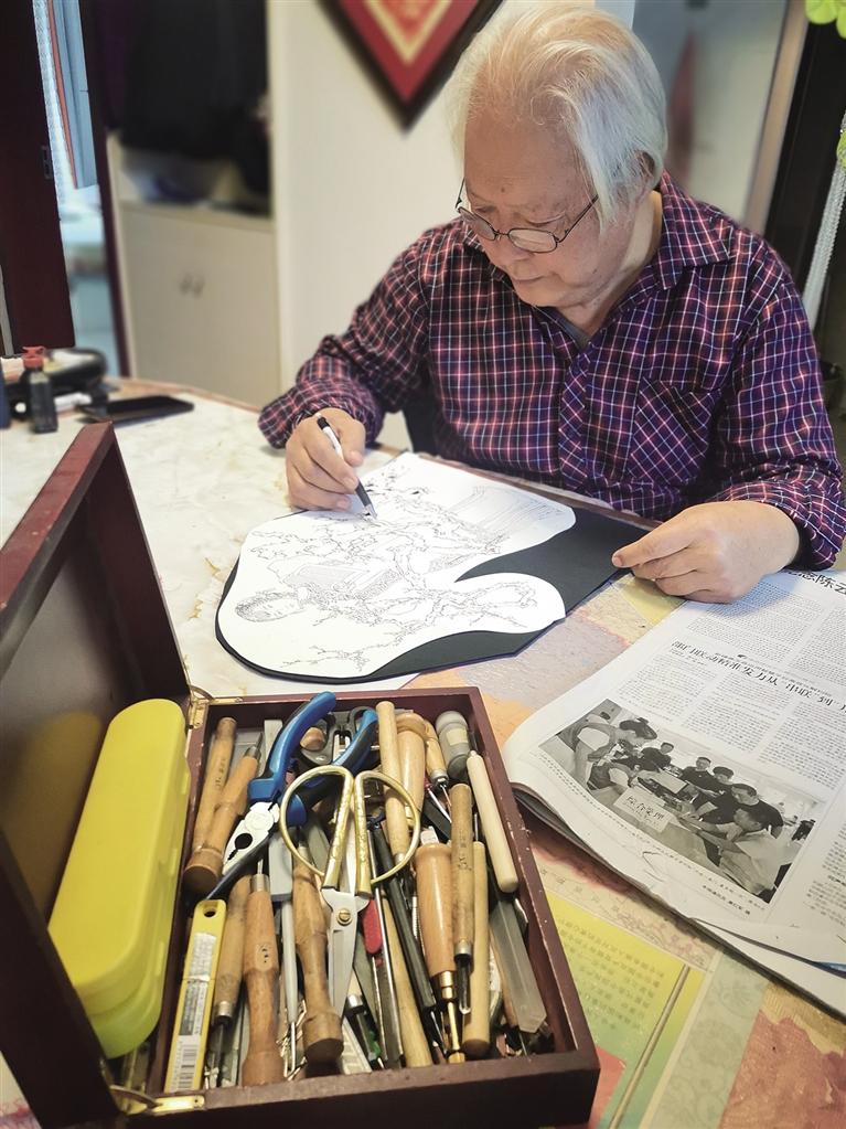 談到創(chuàng)作過程,他眼神中閃爍著匠人的嚴(yán)謹(jǐn)光芒:“剪一個(gè)好作品,首先要有一個(gè)構(gòu)思,然后再把它畫出來,再去動(dòng)剪刀、刻刀各種工具。” 在他這里,剪紙絕非簡單的“剪花樣”,而是嚴(yán)謹(jǐn)?shù)乃囆g(shù)創(chuàng)作,是“胸有成竹”后的“運(yùn)剪如風(fēng)”。