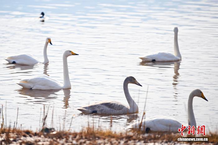 12月9日,在位于甘肅省蘭州市西固區(qū)達(dá)川鎮(zhèn)三河口濕地,從西伯利亞而來(lái)的白天鵝嬉戲。據(jù)悉,該地屬于黃河、湟水、大通河三河交匯之處,生態(tài)環(huán)境良好,擁有1200畝蘆葦蕩。近年來(lái),該地吸引越來(lái)越多來(lái)自西伯利亞的白天鵝選擇在此停歇棲息。中新社記者 李亞龍 攝