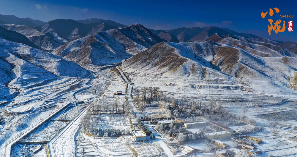 山下的屋舍靜臥于無(wú)邊的潔白中,淺藍(lán)天色漸次暈染,蒼灰山脊如墨筆勾勒,山川草木皆成了畫(huà)中疏淡的筆意,低訴著悠長(zhǎng)的冬韻。