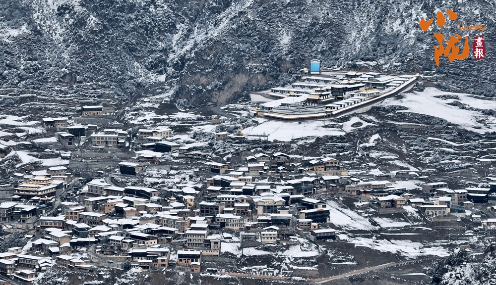 紛揚(yáng)的雪花,正以最溫柔的筆觸,輕輕覆蓋著扎尕那。它們無聲飄落,一層又一層,將起伏的山巒、靜默的藏寨、蜿蜒的小徑,都裹進(jìn)一片無瑕的銀白里。