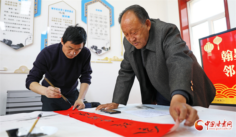 春節(jié)臨近,民樂縣組織群眾文化志愿者服務(wù)隊開展“翰墨迎春”公益文化活動,志愿者現(xiàn)場揮毫潑墨書寫春聯(lián),為群眾書寫春聯(lián)和“福”字,讓群眾在家門口享受“文化大餐”,迎接新春佳節(jié)的到來。