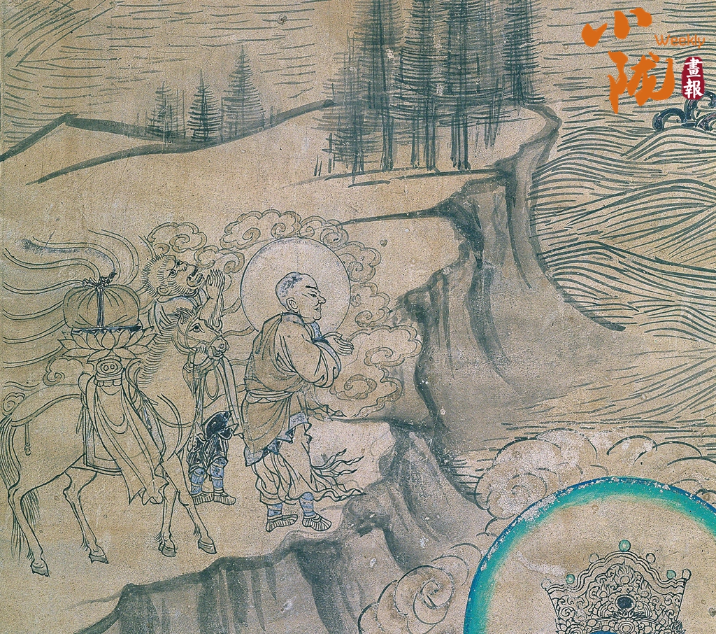 榆林窟作為莫高窟的“姊妹窟”,在馬文化的呈現(xiàn)上更藏別樣驚喜,更是《西游記》故事圖像的重要源頭。第3窟《普賢變》中的玄奘取經(jīng)圖,白龍馬穩(wěn)穩(wěn)馱著佛經(jīng)立于河岸,緊隨玄奘與猴面行者拜別普賢菩薩,這一形象比明代《西游記》典籍早了三百余年,將絲路取經(jīng)故事與馬的意象完美聯(lián)結,成為藝術史上的經(jīng)典瞬間。