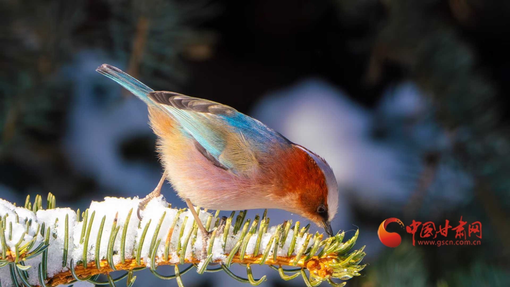 中國(guó)甘肅網(wǎng)2月26日訊(西北角·中國(guó)甘肅網(wǎng)記者 張慧雅 通訊員 焦方寧 王東琳 張宏)春日里,朔風(fēng)卷寒,瓊英漫舞。冷空氣過境后,祁連山區(qū)被厚厚的白雪層層疊疊地包裹,千峰萬(wàn)壑在陽(yáng)光下閃耀著清冷的銀輝,仿佛天地間所有的色彩都被收斂,只留下一片浩渺蒼茫的純白世界。暖陽(yáng)下的祁連山林靜極了,靜得能聽見雪粒從松針上輕輕滑落的細(xì)碎聲響。在清寂蒼莽的林海間,總有一抹靈動(dòng)色彩暈染在蒼山翠柏之間,為寒冷的山野添得幾分鮮活生氣。這抹亮色,定格了鳳頭雀鶯雪中覓食的珍貴瞬間。這些幀幀如畫的影像,既鐫刻下高山珍禽于自然環(huán)境中求生的智慧,也繪就出祁連山生態(tài)系統(tǒng)獨(dú)有的生命力與堅(jiān)韌底色。