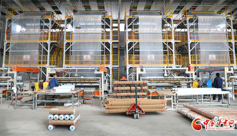 2月25日,在民樂(lè)工業(yè)園區(qū)內(nèi)一地膜生產(chǎn)車(chē)間,工人們正加足馬力生產(chǎn)地膜,助力春耕春播。