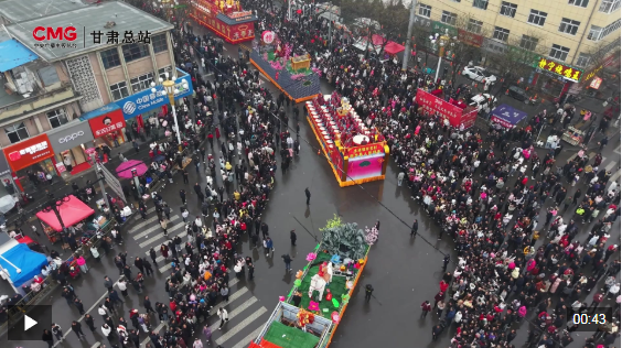 【甘快看】甘肅社火“炸街”過大年:莊浪高抬凌空起舞 隴西古郡點亮不夜天