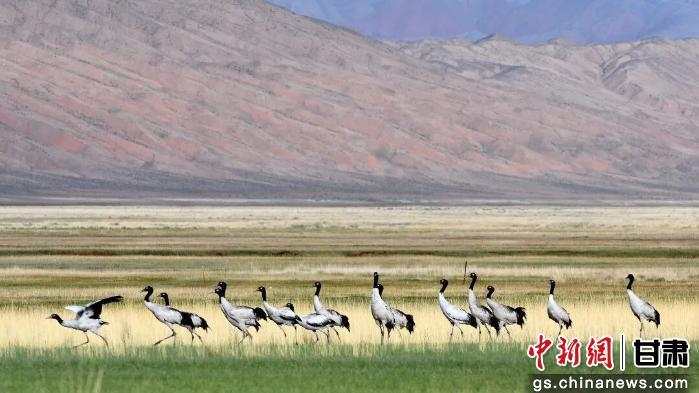 近五年來(lái),保護(hù)區(qū)記錄的野生動(dòng)物越來(lái)越多,生物多樣性也越來(lái)越豐富。圖為肅北縣記錄到的黑頸鶴。(資料圖)酒泉市融媒體中心供圖