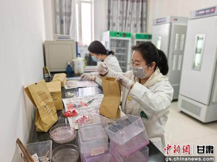 圖為瓜州縣現(xiàn)代農(nóng)業(yè)技術(shù)服務(wù)中心工作人員對抽檢樣品統(tǒng)一開展發(fā)芽率試驗。瓜州縣委宣傳部供圖