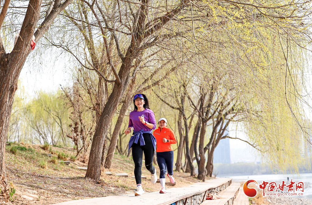 3月24日,市民在蘭州市城關區(qū)馬拉松公園跑步健身。