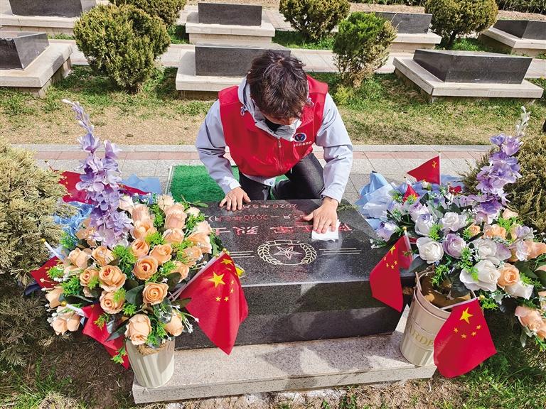 輕擦墓碑寄哀思 一拭一撫敬英魂